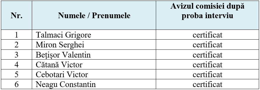 Anunț privind rezultatele probei interviu a solicitanților certificatului topogeodezic / cartografic